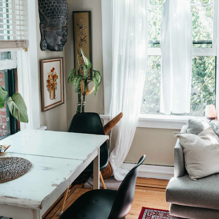 Neutrals are often the way to go, these make a bold wall really pop. If you've gone with an off-white then a doubling the shade to highlight the architraves is a good look.